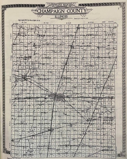More recently, I’ve created a series of ten driving tours that can be used to find every one of the historic church sites I visited. The tours are organized by townships, beginning in the northwestern part of the county then continuing south along the western side, east across the southern townships, up through the townships east and north of Urbana, then finishing in Rantoul.